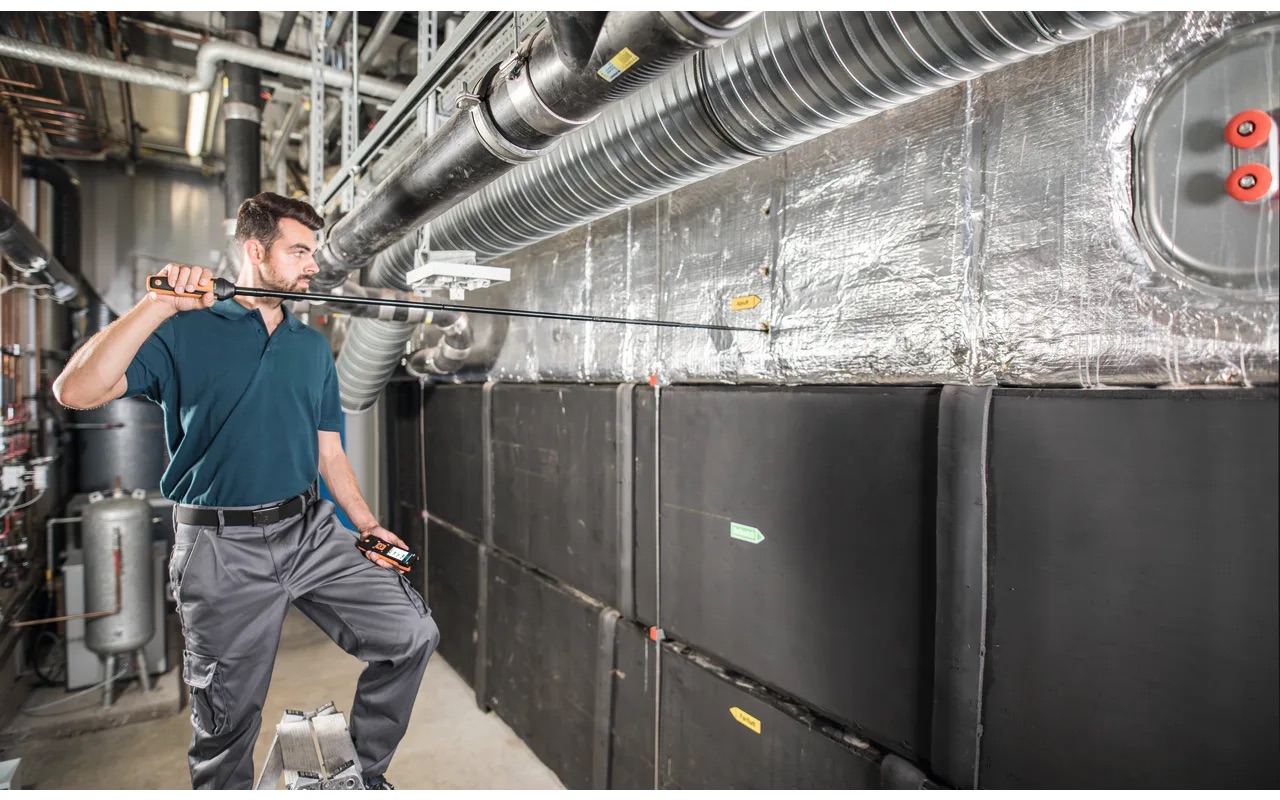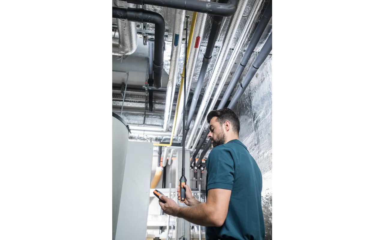 Integruota teleskopinė rankena išsitraukia iki 1,0 m, o ją galima papildomai prailginti iki 2,0 m su atskirai įsigyjamu priedu. Matavimo duomenys belaidžiu ryšiu perduodami į suderinamą Testo matavimo prietaisą (užsakomas atskirai), o rankenoje esantis mygtukas leidžia patogiai fiksuoti duomenis tiek momentinių, tiek ilgalaikių matavimų metu. Dėl išmanios kalibravimo koncepcijos, kalibravimui reikia siųsti tik zondą, todėl pagrindinis prietaisas lieka naudojamas be pertraukos.