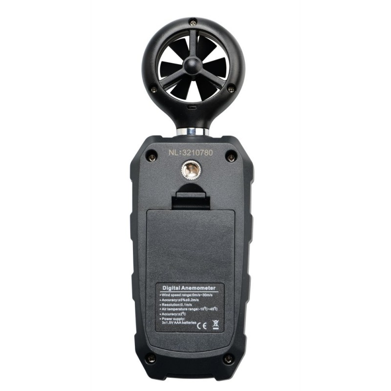 Prietaisas tinkamas meteorologiniams stebėjimams, ventiliacijos sistemų patikrai, pramoniniams oro srauto matavimams bei kitoms sritims, kur reikalingas tikslus oro greičio nustatymas. Anemometras pasižymi plačiu matavimo diapazonu ir galimybe pasirinkti skirtingus matavimo vienetus. Foniniu apšvietimu aprūpintas LCD ekranas leidžia aiškiai matyti rodmenis, o papildomos funkcijos – maksimalios, vidutinės ir momentinės reikšmės fiksavimas – padeda atlikti išsamesnę analizę. Integruota „Windchill“ funkcija informuoja apie juntamąją temperatūrą esant žemai aplinkos temperatūrai. Prietaisas maitinamas 3 AAA baterijomis, turi automatinio išsijungimo funkciją ir baterijos būsenos indikatorių.