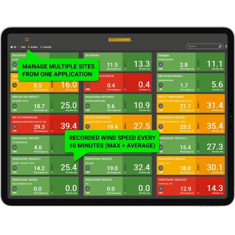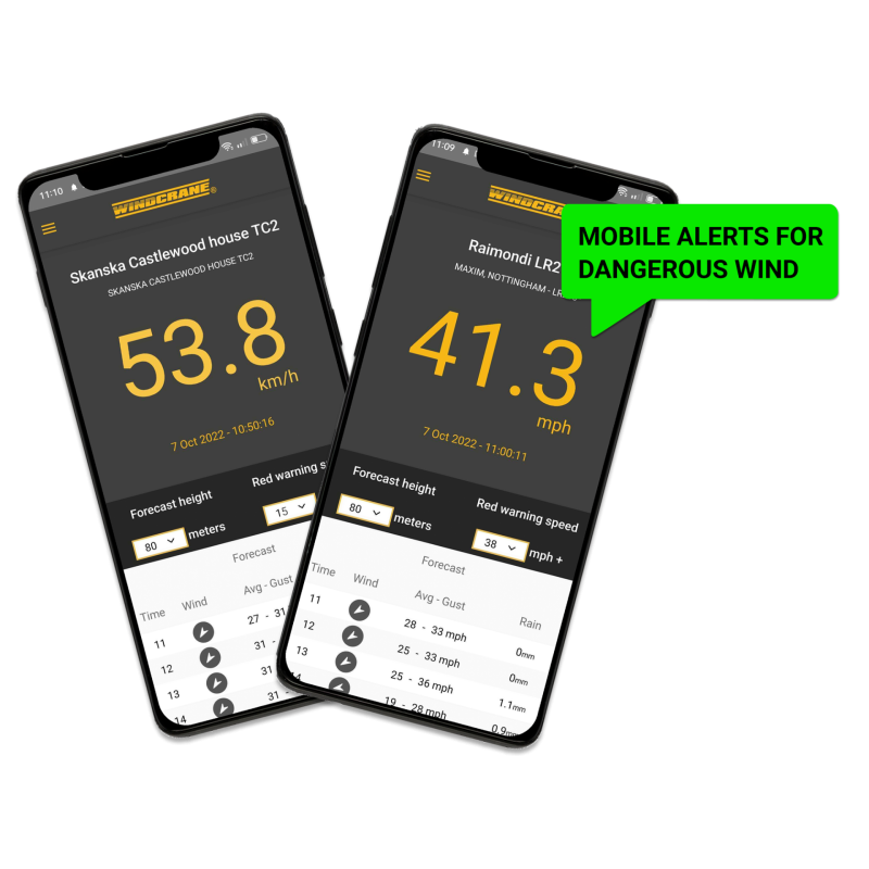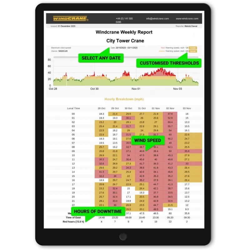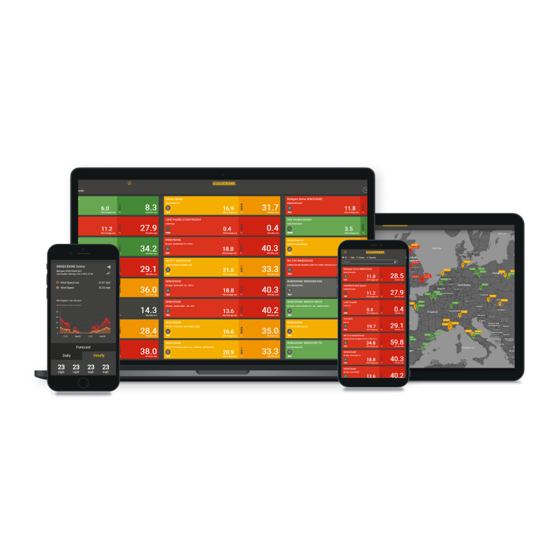 Kranų operatoriai mato vėjo greitį tiesiogiai kabinoje – ekranas atnaujina rodmenis kas sekundę. Be to, galima planuoti kėlimo darbus pagal individualią vėjo prognozę konkrečiame krano aukštyje. Visa informacija saugoma ir pasiekiama per Wind Data Service Plan.