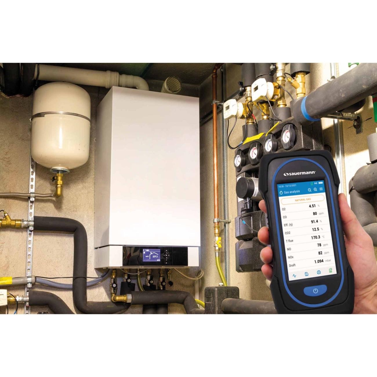 Analizatorius leidžia tiksliai stebėti degimo procesą ir apskaičiuoti papildomus parametrus, tokius kaip CO₂ koncentracija, NOx, oro perteklius, temperatūrų skirtumas bei degimo efektyvumas. Integruota automatinė siurblio apsauga apsaugo jutiklius nuo pažeidimo esant didelėms dujų koncentracijoms.