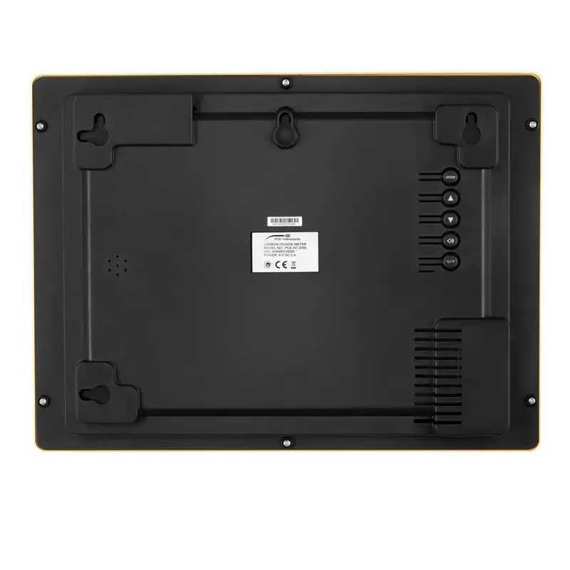 Naujoviškai suprojektuotas, oro kokybės matuoklis dideliu ekranu, skirtas patalpų oro kokybei stebėti. Šis matavimo prietaisas naudojamas patalpų oro kokybei stebėti didelėse patalpose: posėdžių salėse, poilsio kambariuose, viešosiose erdvėse, klasėse ar vaikų darželiuose. Dėl didelių 388 x 288 x 43 mm matmenų, CO2 indikatorius lengvai įskaitomas ir iš didesnio atstumo. Naudojant CO2 indikatoriaus sieninį laikiklį, didelį ekraną taip pat galima pritvirtinti ant bet kurio stabilaus paviršiaus (sienos, plokštės ir pan).
