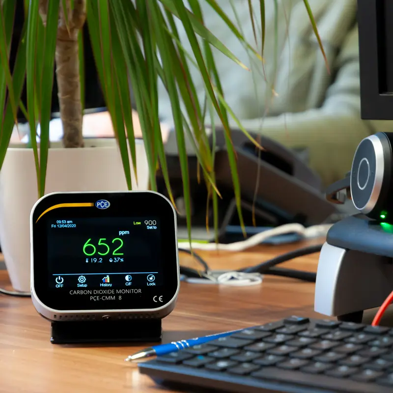 Naudodami PCE-CMM 8-ICA galite užtikrinti tinkamą klimatą uždarose patalpose: matuosite ne tik CO2 kiekį ore, bet ir santykinę oro drėgmę bei patalpos temperatūrą. CO2 matuoklis rodo anglies dioksido koncentraciją iki 9999 ppm, temperatūrą nuo -10... 50 °C ir santykinę oro drėgmę nuo 20... 95 %. CO2 matuoklio 3,5 colio ekrane galima tiesiogiai nuskaityti atitinkamas vertes, o CO2 ekrano spalva keičiasi, kad pagal CO2 kiekį būtų galima objektyviai nustatyti patalpos oro kokybę. Dėl šių priežasčių PCE-CMM 8-ICA matuoklis ypač tinka: biurams, mokykloms, viešiesiems pastatams ar ligoninėms ir apskritai visiems pastatams ir patalpoms, kuriose būna žmonių.