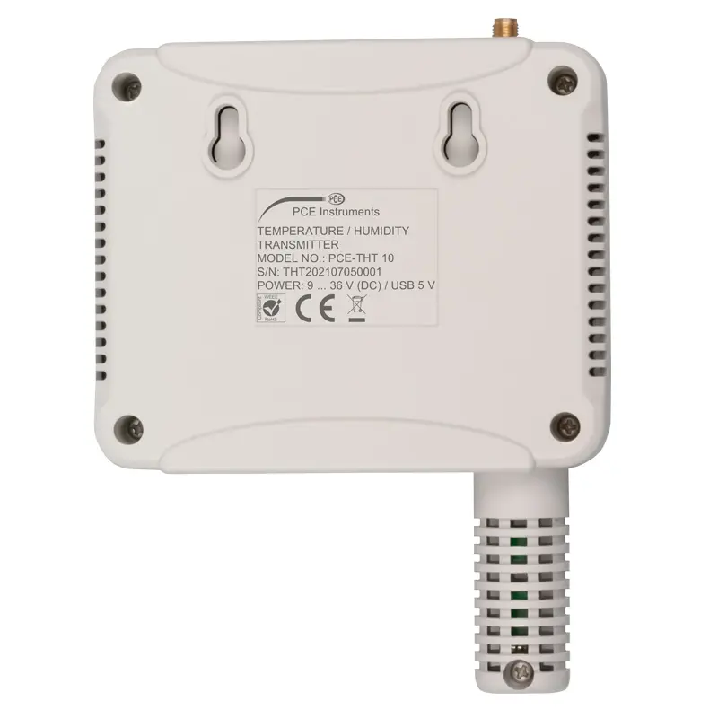 Oro kokybės matuoklio temperatūros matavimo diapazonas -20 ... 60 °C, o drėgmės matavimo diapazonas - 0 ... 99,9 % RH. Termohigrometro rodmenis galima tiesiogiai nuskaityti 2,3 colio spalvotame ekrane. Naudojant duomenų kaupiklio funkciją, visi termohigrometro rodmenys saugomi 12800 matavimo taškų atmintyje, todėl matuoklis gali būti naudojamas klimato sąlygoms stebėti: biuruose, logistikos įmonėse, šiltnamiuose ar klasėse. Užfiksuotų išmatuotų verčių analizę galima atlikti naudojant oro kokybės matuoklio programinę įrangą, kurią rasite PCE Instruments atsisiuntimo portale. Svarbu paminėti ir tai, kad jeigu tinkle yra keli termohigrometrai, visus juos vienu metu galima valdyti per atsisiųstą programinę įrangą. Oro kokybės matuoklis maitinamas per 12 V nuolatinės srovės tinklo keitiklį arba per mikro USB sąsają. Montuojant ant sienos, nugarėlėje yra skylė termohigrometrui prie varžtų pritvirtinti. Prie termohiprometro pridedamas ISO kalibravimo sertifikatas.