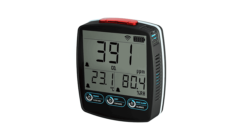 Belaidis CO2 ir oro kokybės duomenų kaupiklis yra puikus prietaisas oro kokybei ir anglies dvideginio lygiui stebėti ir registruoti namuose, darbe, mokyklose ir įvairiose kitose srityse. Matuojantis anglies dioksidą, temperatūrą ir drėgmę, EL-IOT-CO2 nuolat registruoja šiuos parametrus, pateikdamas dabartinius, mažiausius ir maksimalius rodmenis ryškiame ir aiškiame ekrane, kad iš pirmo žvilgsnio būtų rodoma oro kokybė. Kiekvienam parametrui galite nustatyti aukštą ir žemą pavojaus signalą. Kai bus pasiektos ribos, momentinis pranešimas apie esminius pokyčius bus išsiųstas el. paštu ir (arba) SMS žinute. EL-IOT-CO2 maitinamas per USB maitinimo šaltinį, taip pat galima naudoti AA baterijas trumpalaikei atsarginei kopijai, jei maitinimas nutrūktų.