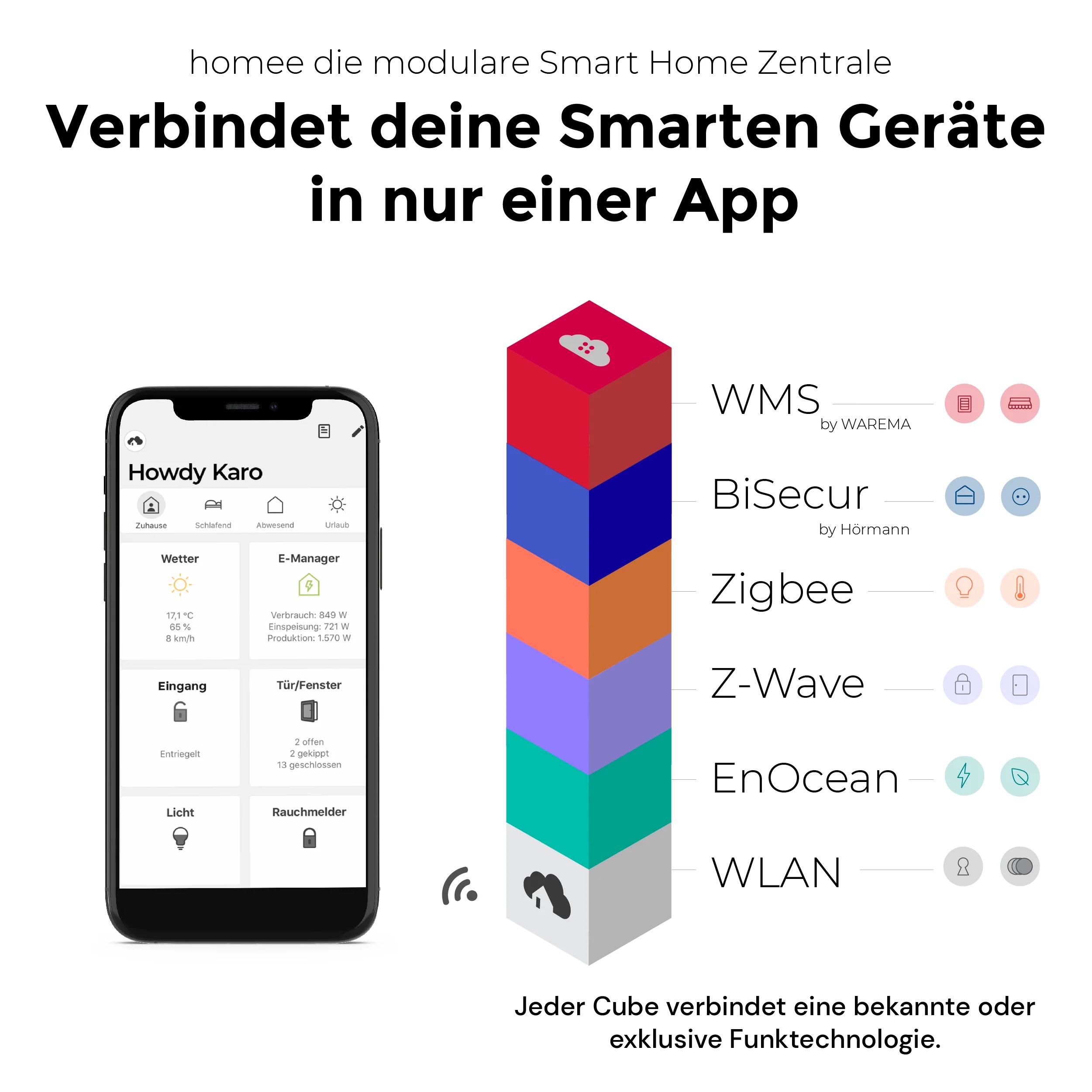 Hörmann homee Brain Basic Cube – tai lanksti išmaniųjų namų valdymo sistema, leidžianti centralizuotai valdyti įvairius prietaisus vienoje programėlėje. Šis valdiklis suderinamas su plačiu įrenginių spektru: nuo garažo ar kiemo vartų, įėjimo durų bei užraktų, iki išmaniųjų termostatų, žaliuzių, apšvietimo, apsaugos kamerų ir kt.