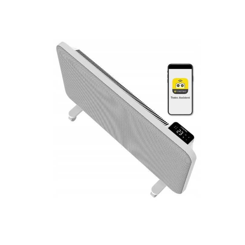 Įrenginys turi 3 režimus – komforto, ekonominį ir apsaugos nuo užšalimo. Integruotas atviro lango jutiklis, laikmačiai (24 h ir savaitinis) bei Wi-Fi valdymas per Trotec Assistant programėlę leidžia patogiai valdyti prietaisą telefonu. TCH 2030 E gali būti naudojamas kaip pastatomas šildytuvas su ratukais arba tvirtinamas prie sienos. Dėl IP24 drėgmės atsparumo saugiai tinka net vonios kambariuose.