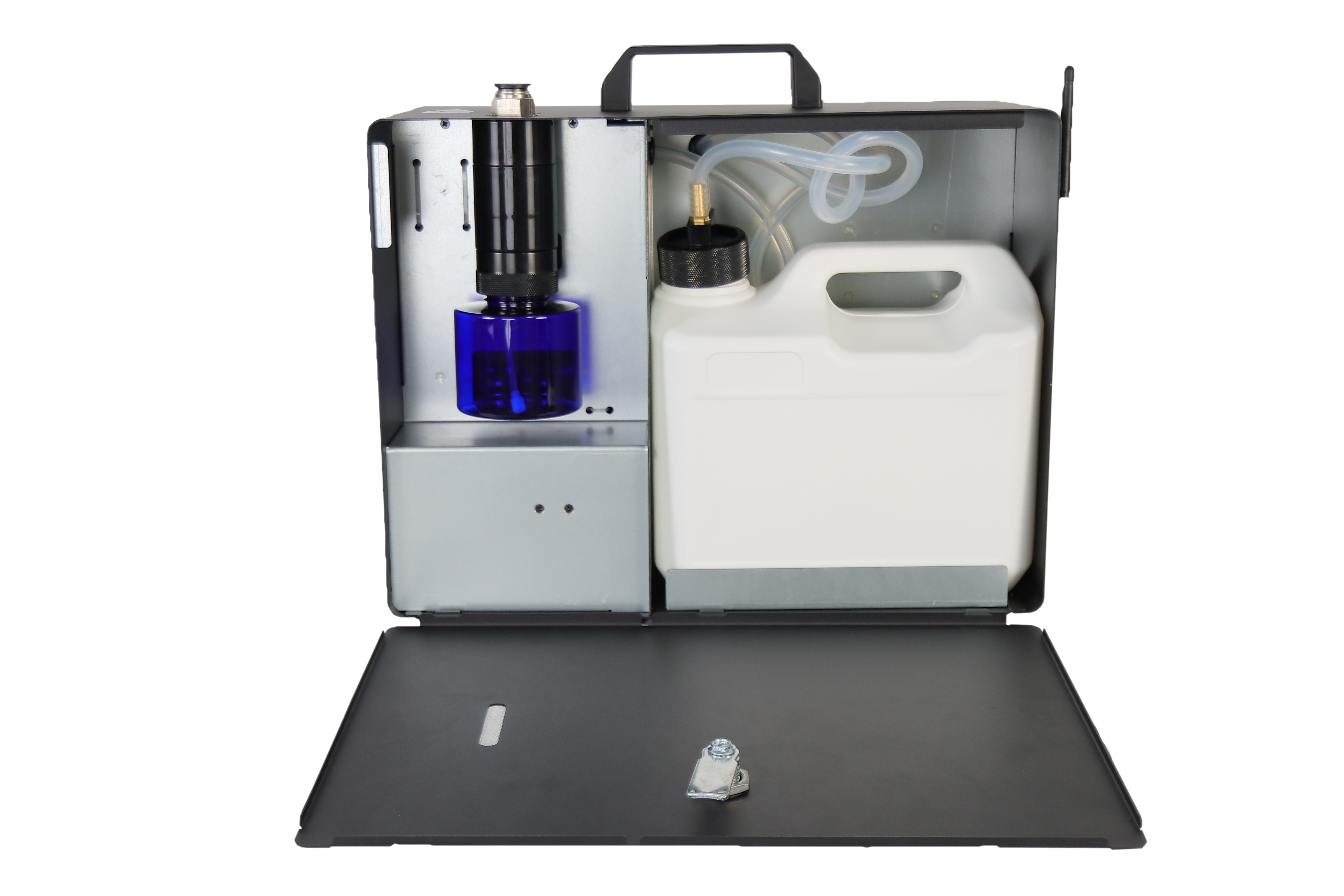 Difuzorius aprūpintas dviem kvapų talpomis – pagrindine 5 litrų talpa ir papildoma 250 ml buteliuku kasdieniam naudojimui. Aliejus papildomas automatiškai per vidinę tiekimo sistemą. Naudotojui nereikia rūpintis dėl lygio – skysčio lygis stebimas nuotoliniu būdu per IoT valdymo sistemą (Wi-Fi / Bluetooth).