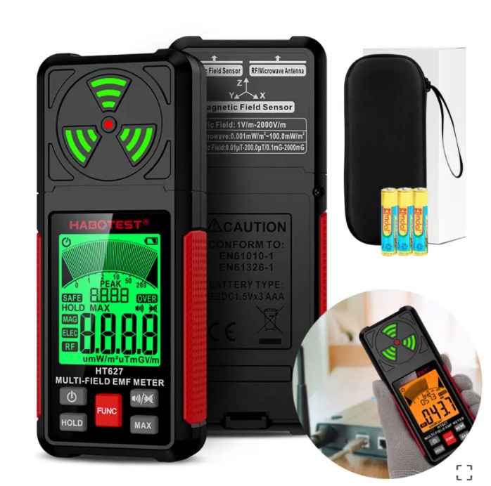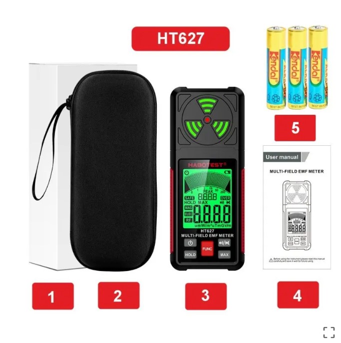 • Platus matavimo diapazonas: HT629 gali matuoti beta, gama ir rentgeno spinduliuotę plačiame diapazone, todėl tai yra universalus įrankis, skirtas įvairioms reikmėms