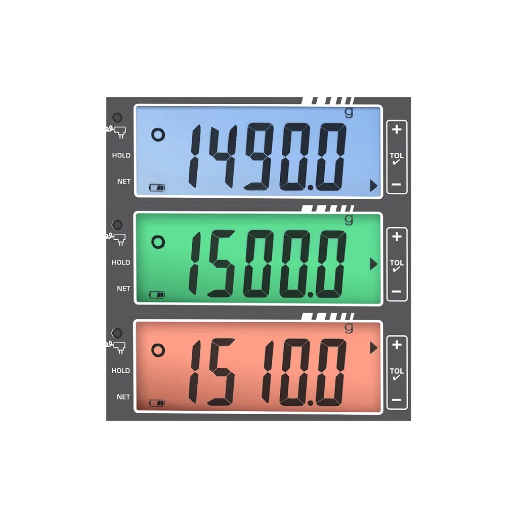- Kontrolinio svėrimo funkcija su spalviniu indikavimu leidžia greitai nustatyti, ar svoris atitinka normą