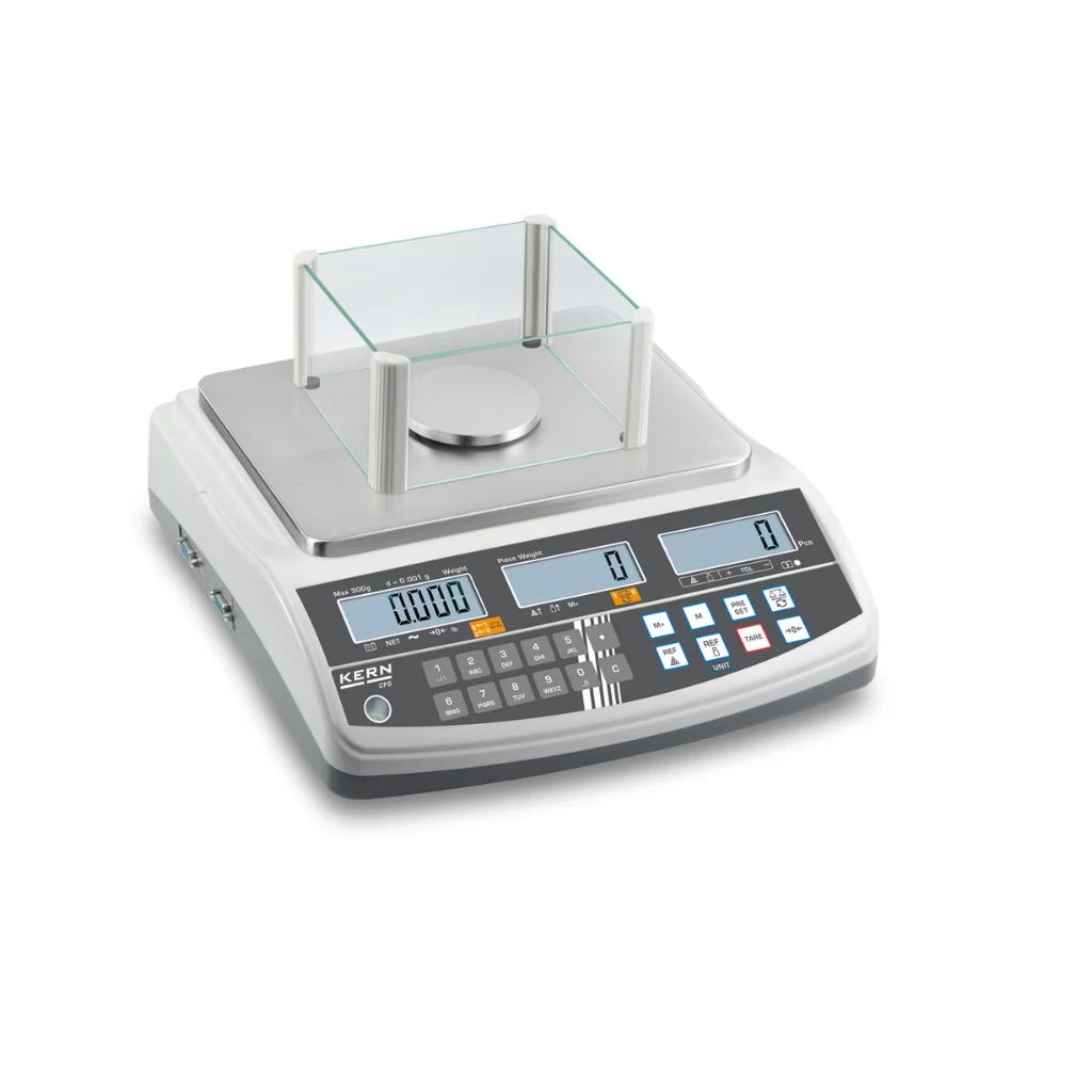 Vienetų skaičiavimo svarstyklės KERN CFS 300-3 – profesionalios didelės skiriamosios gebos skaičiavimo svarstyklės su 100 elementų atmintimi ir galimybe prijungti antrąsias svarstykles. Šis modelis pasižymi iki 75 000 taškų skaičiavimo skiriamąja geba ir yra skirtas itin tiksliam mažų detalių skaičiavimui laboratorijose, elektronikos pramonėje, sandėliuose ir gamybos procesuose.