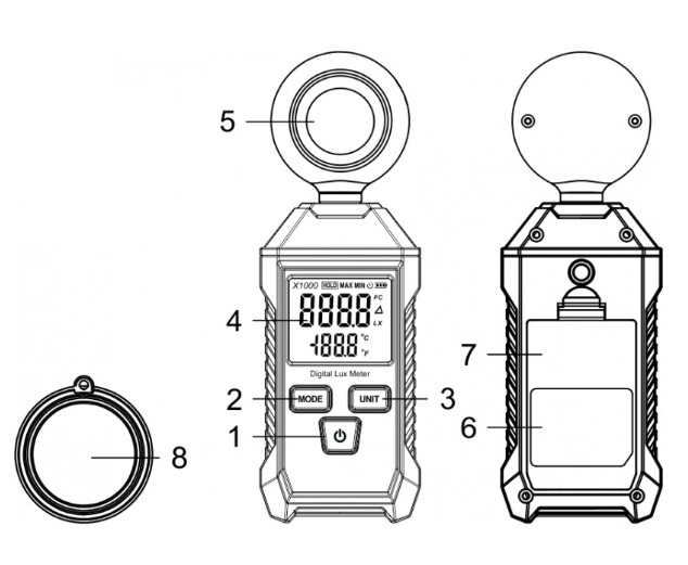 - Matavimo diapazonas: 1-200 000 liuksų / 1-18500 Fc